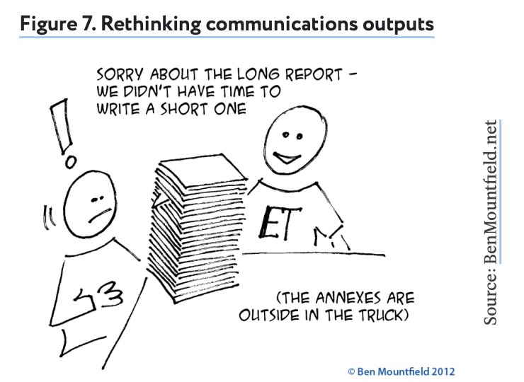 After all, even the most high-quality, robust and credible research won’t have an impact if it doesn’t reach the right people, at the right time, and in a way that they can understand and connect with. As Jeff Knezovich (2012) argues, ‘a policy brief is a piece of paper, it doesn’t DO anything on its own’.