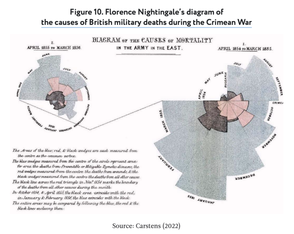 - Carstens, A. (2022). Florence Nightingale’s diagram of the causes of British military deaths during the Crimean War in Diagrammatic War, 1858.